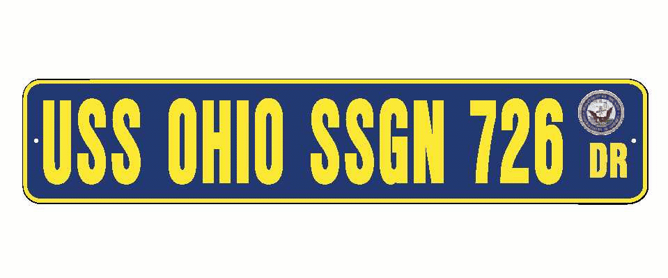 USS OHIO SSGN 726 Aluminum Street Sign Navy Blue / Yellow 6" x 30" Military USN SS002