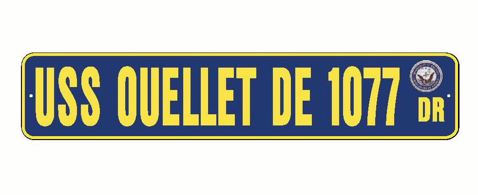 USS OUELLET DE 1077 Aluminum Street Sign Navy Blue / Yellow 6" x 30" Military USN SS002