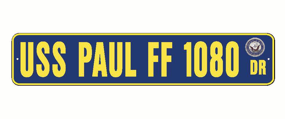 USS PAUL FF 1080 Aluminum Street Sign Navy Blue / Yellow 6" x 30" Military USN SS002