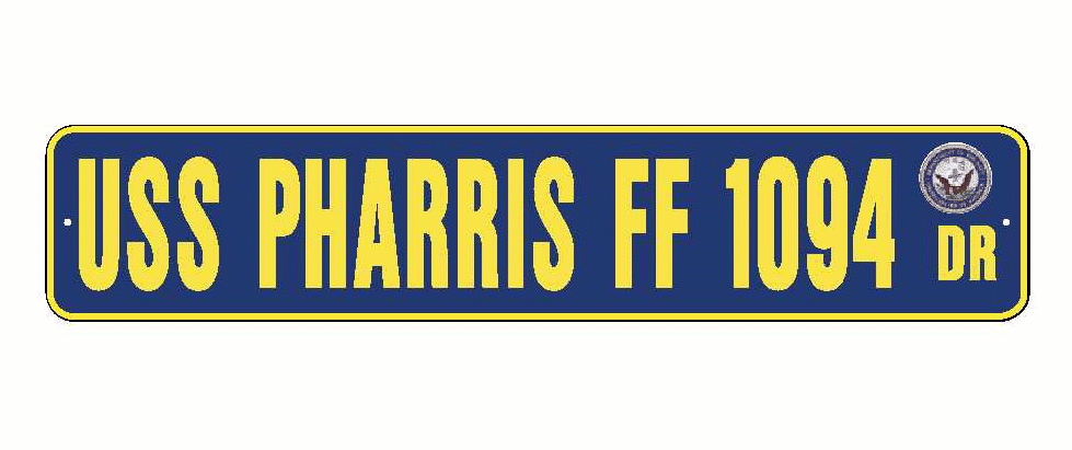 USS PHARRIS FF 1094 Aluminum Street Sign Navy Blue / Yellow 6" x 30" Military USN SS002