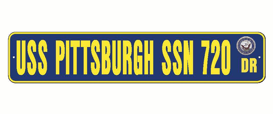 USS PITTSBURGH SSN 720 Aluminum Street Sign Navy Blue / Yellow 6" x 30" Military USN SS002