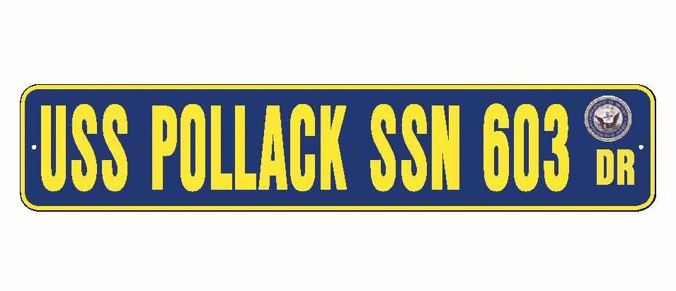 USS POLLACK SSN 603 Aluminum Street Sign Navy Blue / Yellow 6" x 30" Military USN SS002