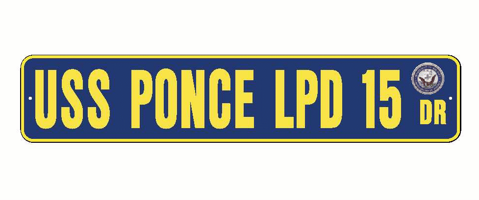 USS PONCE LPD 15 Aluminum Street Sign Navy Blue / Yellow 6" x 30" Military USN SS002