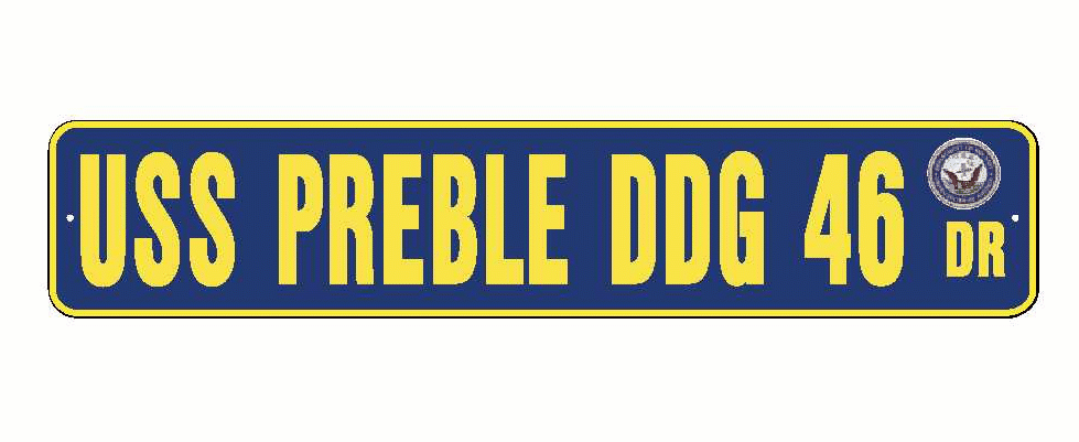 USS PREBLE DDG 46 Aluminum Street Sign Navy Blue / Yellow 6" x 30" Military USN SS002