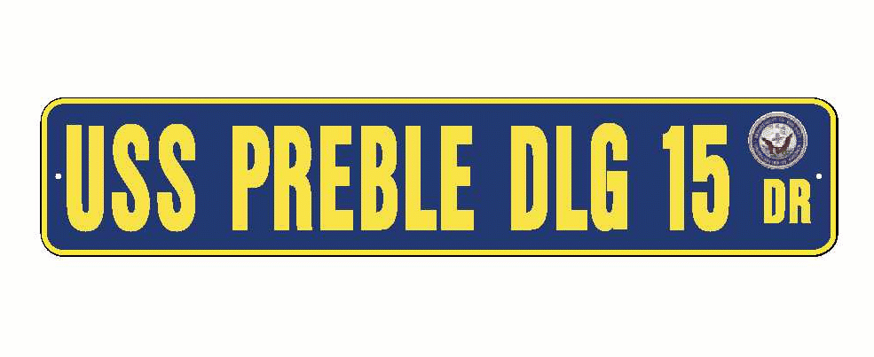 USS PREBLE DLG 15 Aluminum Street Sign Navy Blue / Yellow 6" x 30" Military USN SS002