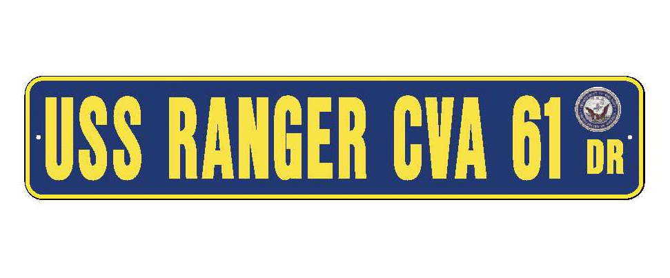 USS RANGER CVA 61 Aluminum Street Sign Navy Blue / Yellow 6" x 30" Military USN SS002