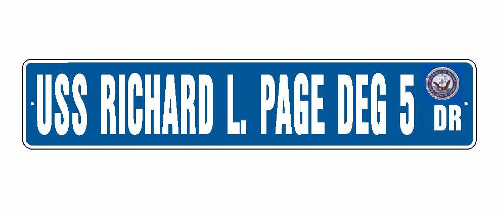 USS RECHARD L PAGE DEG 5 Aluminum Street Sign Blue / White 6" x 30" Military USN SS001