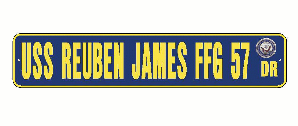 USS REUBEN JAMES FFG 57 Aluminum Street Sign Navy Blue / Yellow 6" x 30" Military USN SS002