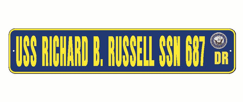 USS RICHARD B. RUSSELL SSN 687 Aluminum Street Sign Navy Blue / Yellow 6" x 30" Military USN SS002