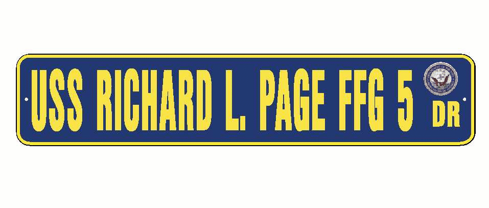 USS RICHARD L. PAGE FFG 5 Aluminum Street Sign Navy Blue / Yellow 6" x 30" Military USN SS002