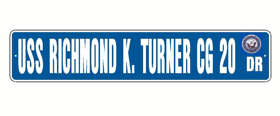 USS RICHMOND K TURNER CG 20 Aluminum Street Sign Blue / White 6" x 30" Military USN SS001