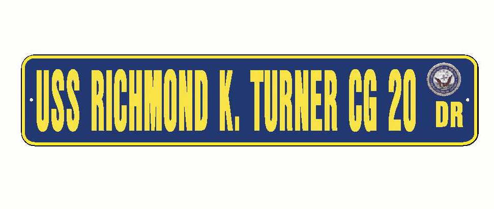 USS RICHMOND K TURNER CG 20 Aluminum Street Sign Navy Blue / Yellow 6" x 30" Military USN SS002