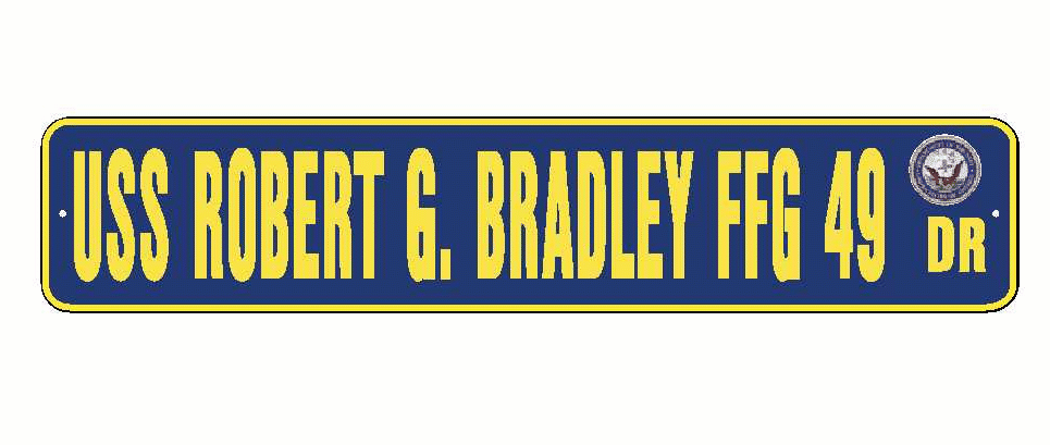 USS ROBERT G BRADLEY FFG 49 Aluminum Street Sign Navy Blue / Yellow 6" x 30" Military USN SS002