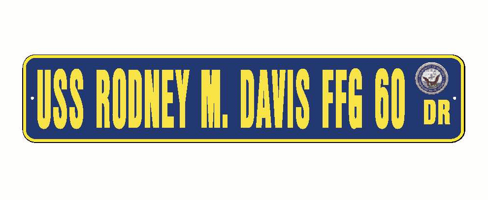 USS RODNEY M DAVIS FFG 60 Aluminum Street Sign Navy Blue / Yellow 6" x 30" Military USN SS002