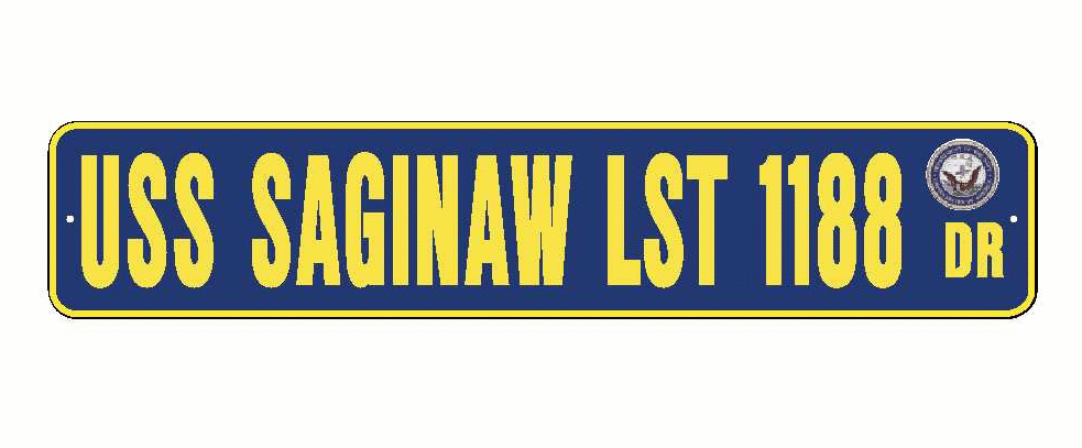 USS SAGINAW LST 1188 Aluminum Street Sign Navy Blue / Yellow 6" x 30" Military USN SS002