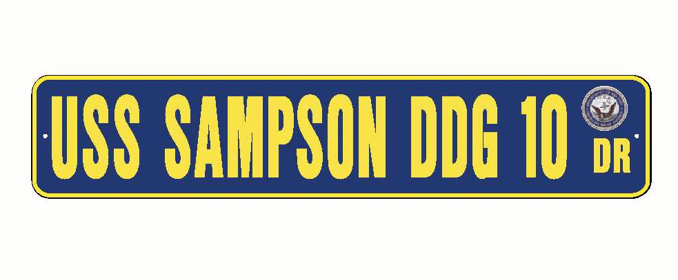 USS SAMPSON DDG 10 Aluminum Street Sign Navy Blue / Yellow 6" x 30" Military USN SS002