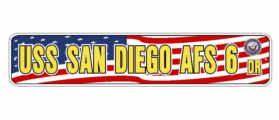 USS SAN DIEGO AFS 6 Aluminum Street Sign Red White Blue U.S. Flag 6" x 30" Military USN SS003