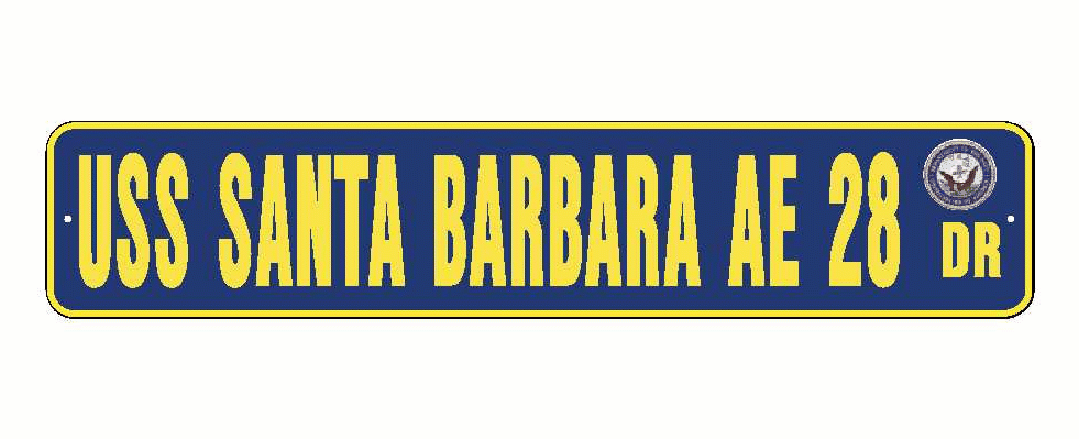 USS SANTA BARBARA AE 28 Aluminum Street Sign Navy Blue / Yellow 6" x 30" Military USN SS002