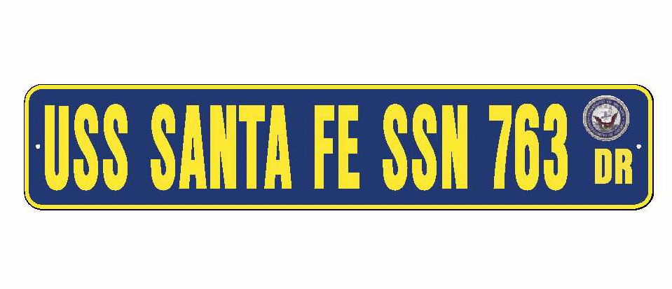USS SANTA FE SSN 763 Aluminum Street Sign Navy Blue / Yellow 6" x 30" Military USN SS002