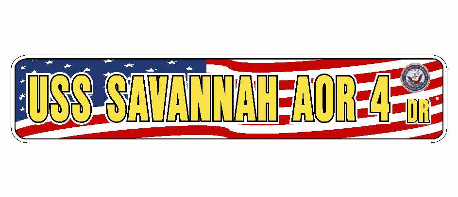 USS SAVANNAH AOR 4 Aluminum Street Sign Red White Blue U.S. Flag 6" x 30" Military USN SS003