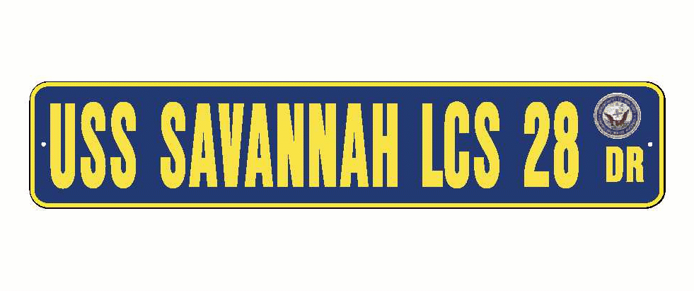 USS SAVANNAH LCS 28 Aluminum Street Sign Navy Blue / Yellow 6" x 30" Military USN SS002