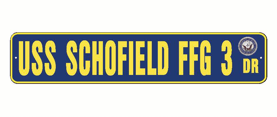 USS SCHOFIELD FFG 3 Aluminum Street Sign Navy Blue / Yellow 6" x 30" Military USN SS002