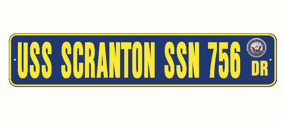 USS SCRANTON SSN 756 Aluminum Street Sign Navy Blue / Yellow 6" x 30" Military USN SS002