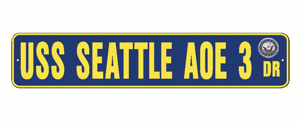 USS SEATTLE AOE 3 Aluminum Street Sign Navy Blue / Yellow 6" x 30" Military USN SS002