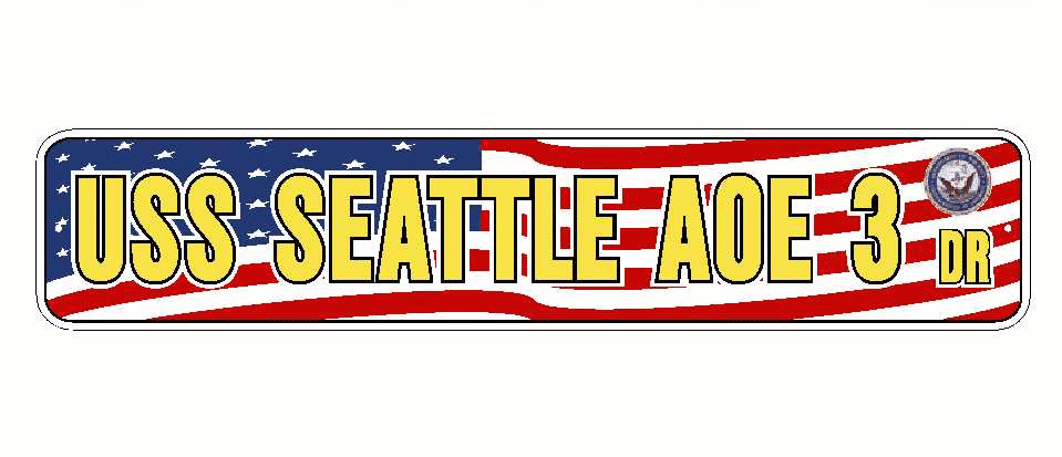 USS SEATTLE AOE 3 Aluminum Street Sign Red White Blue U.S. Flag 6" x 30" Military USN SS003