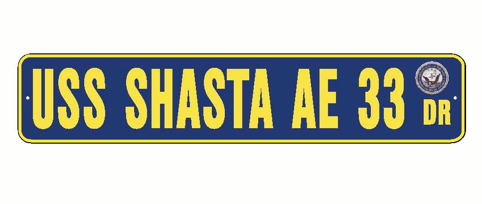 USS SHASTA AE 33 Aluminum Street Sign Navy Blue / Yellow 6" x 30" Military USN SS002