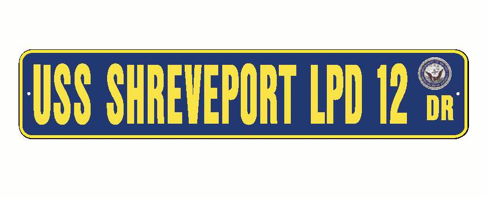 USS SHREVEPORT LPD 12 Aluminum Street Sign Navy Blue / Yellow 6" x 30" Military USN SS002