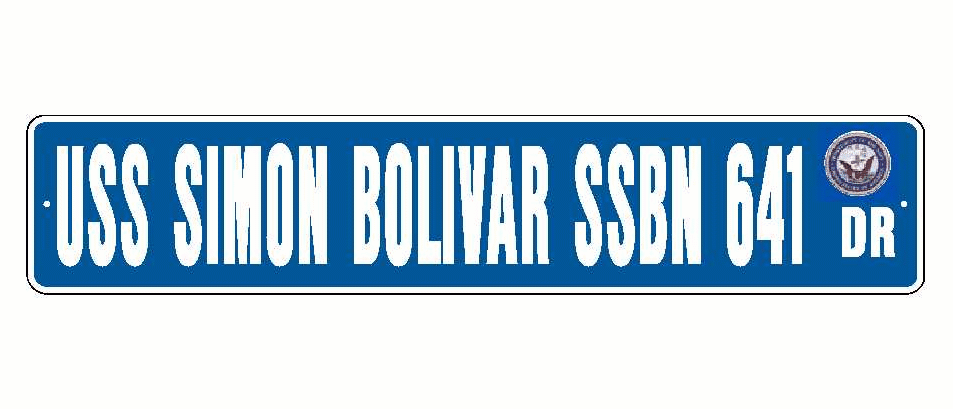 USS SIMON BOLIVAR SSBN 641 Aluminum Street Sign Blue / White 6" x 30" Military USN SS001
