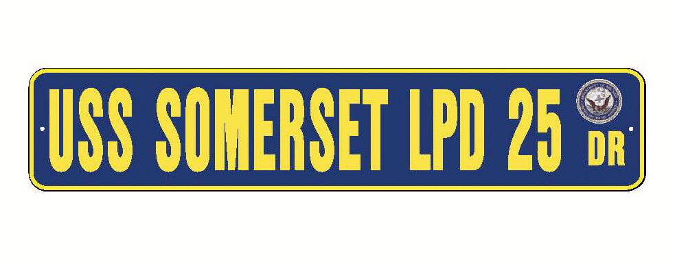 USS SOMERSET LPD 25 Aluminum Street Sign Navy Blue / Yellow 6" x 30" Military USN SS002