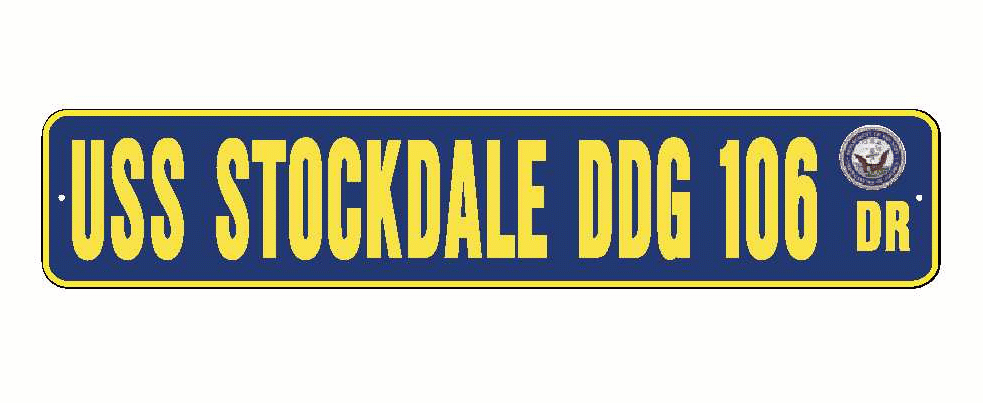 USS STOCKDALE DDG 106 Aluminum Street Sign Navy Blue / Yellow 6" x 30" Military USN SS002