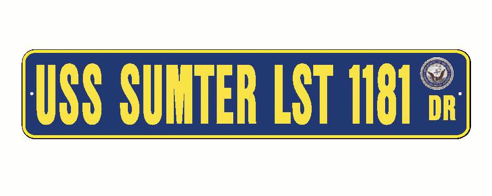 USS SUMTER LST 1181 Aluminum Street Sign Navy Blue / Yellow 6" x 30" Military USN SS002