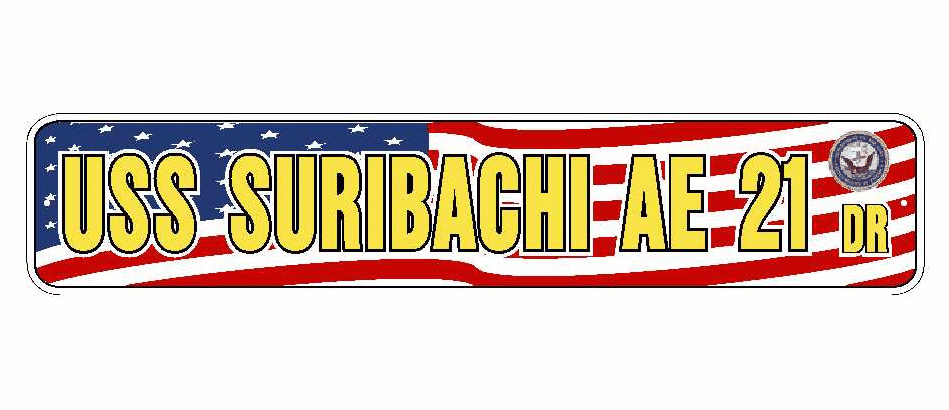 USS SURIBACHI AE 21 Aluminum Street Sign Red White Blue U.S. Flag 6" x 30" Military USN SS003