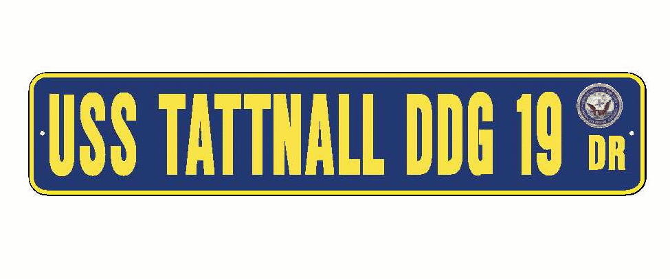USS TATTNALL DDG 19 Aluminum Street Sign Navy Blue / Yellow 6" x 30" Military USN SS002