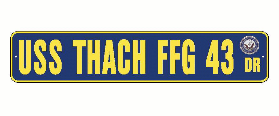 USS THACH FFG 43 Aluminum Street Sign Navy Blue / Yellow 6" x 30" Military USN SS002