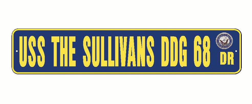 USS THE SULLIVANS DDG 68 Aluminum Street Sign Navy Blue / Yellow 6" x 30" Military USN SS002