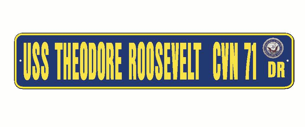 USS THEODORE ROOSEVELT CVN 71 Aluminum Street Sign Navy Blue / Yellow 6" x 30" Military USN SS002