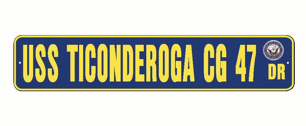 USS TICONDEROGA CG 47 Aluminum Street Sign Navy Blue / Yellow 6" x 30" Military USN SS002