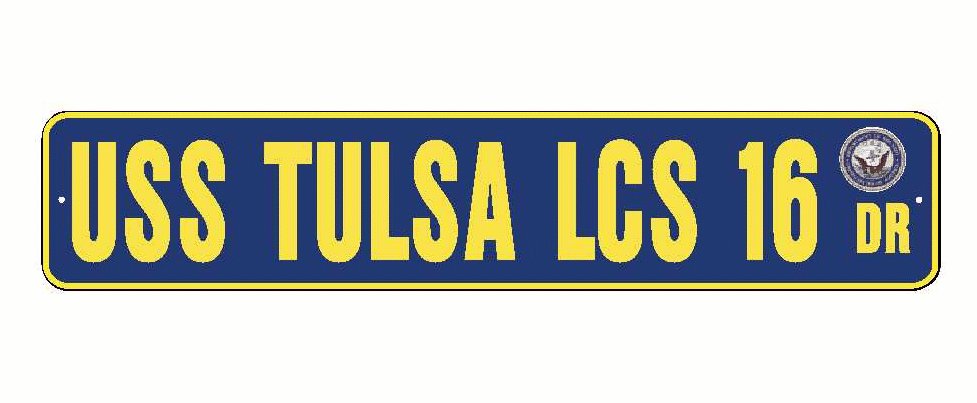 USS TULSA LCS 16 Aluminum Street Sign Navy Blue / Yellow 6" x 30" Military USN SS002