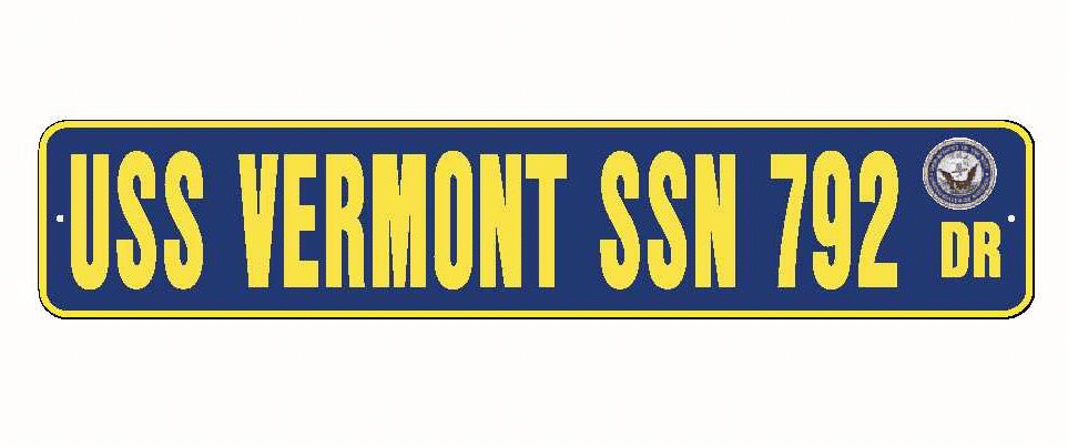 USS VERMONT SSN 792 Aluminum Street Sign Navy Blue / Yellow 6" x 30" Military USN SS002