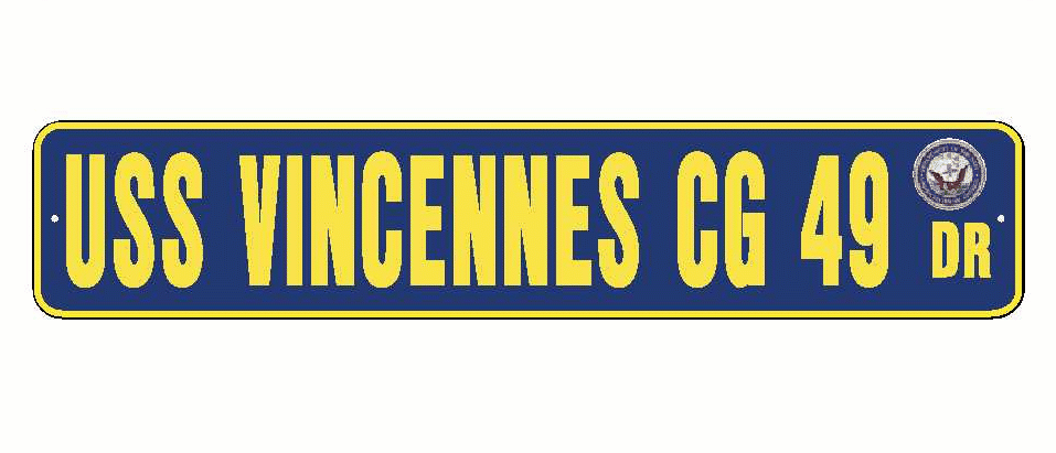 USS VINCENNES CG 49 Aluminum Street Sign Navy Blue / Yellow 6" x 30" Military USN SS002