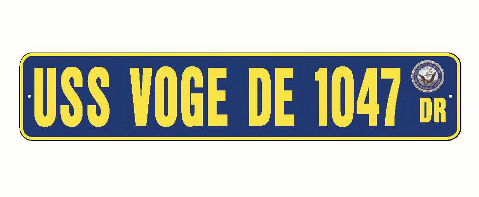 USS VOGE DE 1047 Aluminum Street Sign Navy Blue / Yellow 6" x 30" Military USN SS002