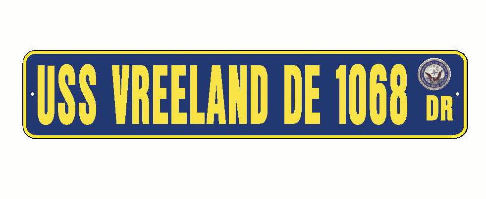 USS VREELAND DE 1068 Aluminum Street Sign Navy Blue / Yellow 6" x 30" Military USN SS002