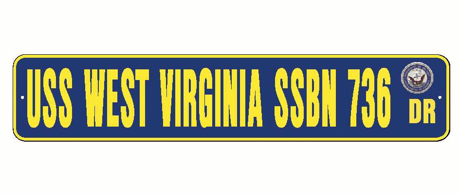 USS WEST VIRGINIA SSBN 736 Aluminum Street Sign Navy Blue / Yellow 6" x 30" Military USN SS002