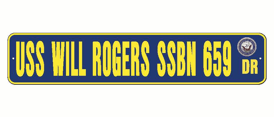 USS WILL ROGERS SSBN 659 Aluminum Street Sign Navy Blue / Yellow 6" x 30" Military USN SS002