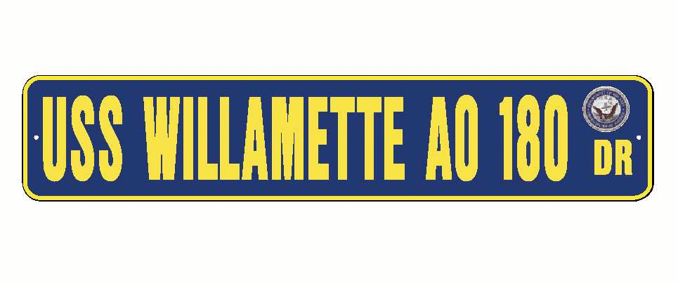 USS WILLAMETTE AO 180 Aluminum Street Sign Navy Blue / Yellow 6" x 30" Military USN SS002