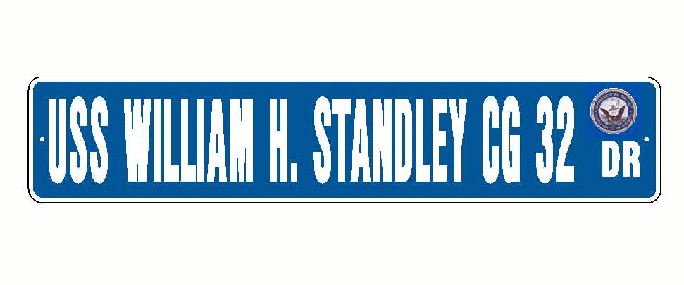 USS WILLIAM H STANDLEY CG 32 Aluminum Street Sign Blue / White 6" x 30" Military USN SS001